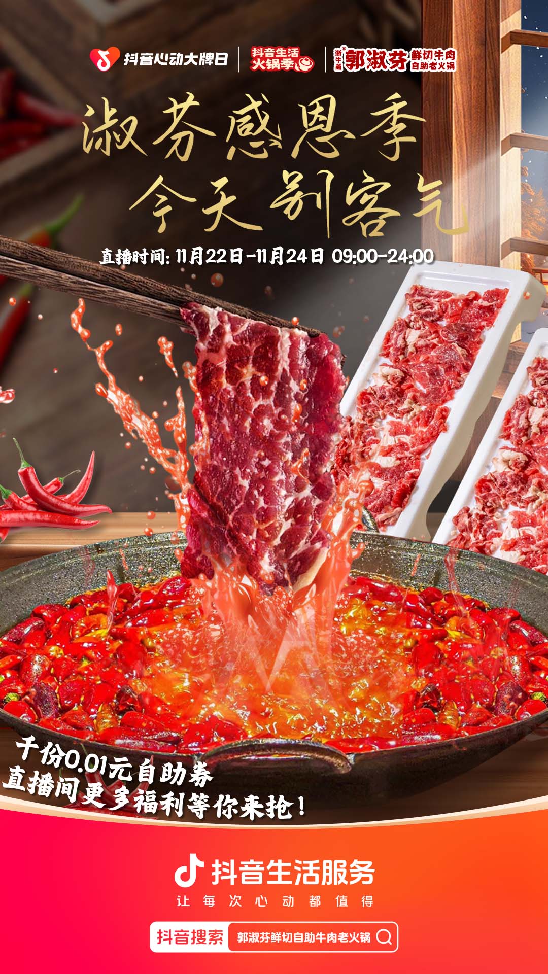 郭淑芬鮮切牛肉自助老火鍋感恩節(jié)大促,以超低折扣誠(chéng)意回饋粉絲用戶(hù)