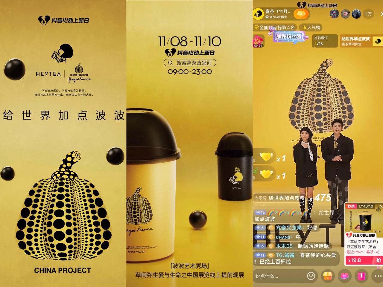 喜茶跨界聯(lián)動(dòng)草間彌生,在抖音藝術(shù)化呈現(xiàn)“波波”系列經(jīng)典飲品