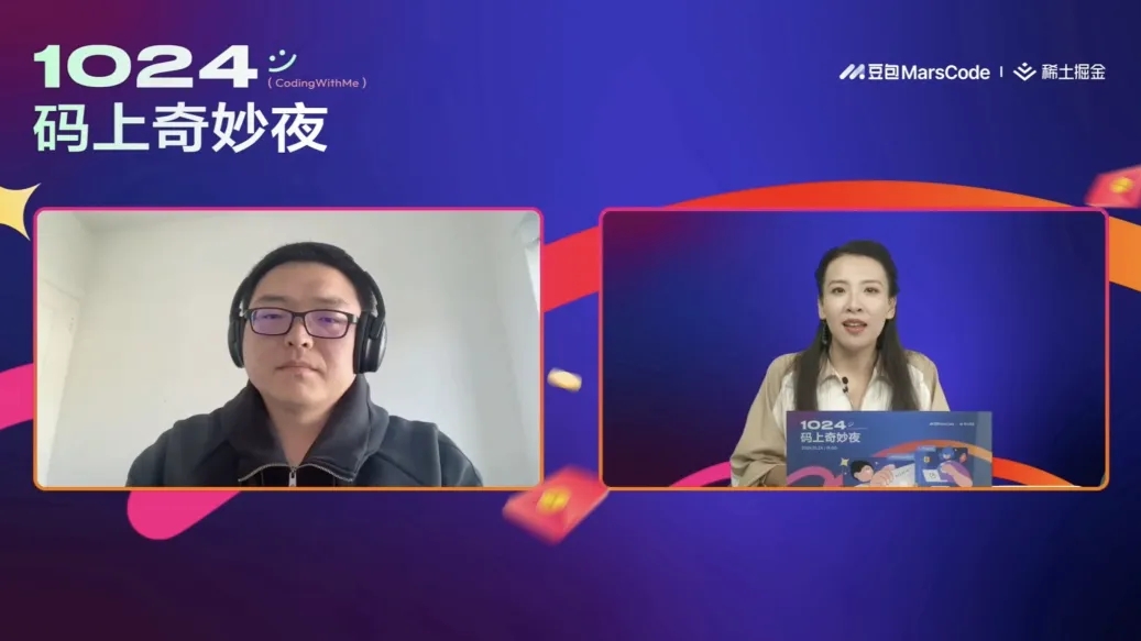 10月24日,豆包MarsCode 與稀土掘金社區(qū)攜手舉辦了“1024碼上奇妙夜”直播活動(dòng)。本次直播共同探討了 AI 如何在不同階段助力個(gè)人成長(zhǎng)與職業(yè)發(fā)展,以及 AI 技術(shù)未來(lái)的發(fā)展趨勢(shì)。同時(shí),在1024這個(gè)屬于開(kāi)發(fā)者的節(jié)日里,豆包MarsCode 也為廣大開(kāi)發(fā)者帶來(lái)一份厚禮,發(fā)布全新的 AI 刷題、AI 練中學(xué)等功能,無(wú)論你是新手程序員,還是經(jīng)驗(yàn)豐富的開(kāi)發(fā)者,都能在學(xué)習(xí)和開(kāi)發(fā)過(guò)程中體驗(yàn)到豆包MarsCode 帶來(lái)的助力和效率提升。