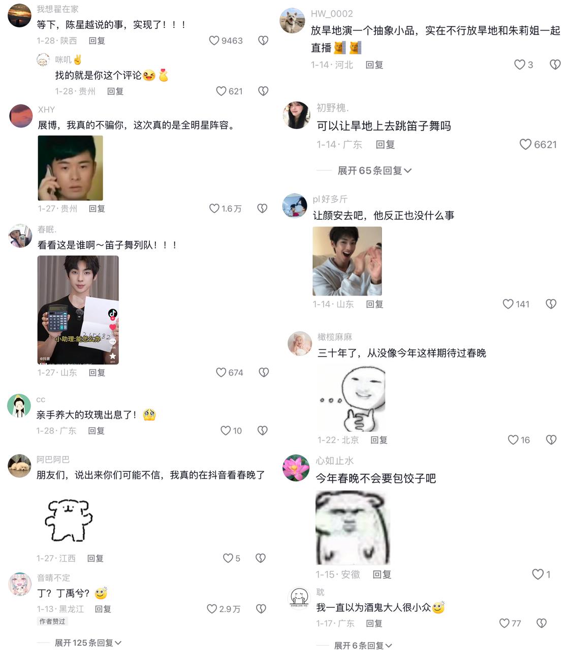 早在2024龍年春晚前夕,抖音用戶就自發(fā)掀起了一波花式押題的熱潮,玩梗亮活八仙過海各展其能,讓春節(jié)各大晚會(huì)導(dǎo)演“汗流浹背”。而“早知道這么好看我就留著過年看”和“我也吃上細(xì)糠了”,也在整個(gè)24年也成為各大評(píng)論區(qū)的熱梗。