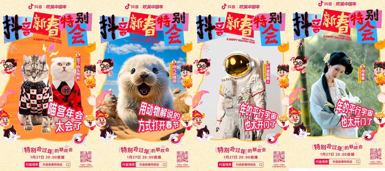 看得出來,雖說押題預(yù)測(cè)、銳評(píng)造梗早已成為春節(jié)的保留項(xiàng)目,但像“抖音新春特別會(huì)”這般,真正讓充滿創(chuàng)造力和表達(dá)欲的普通群眾親自下場(chǎng)策劃、平臺(tái)創(chuàng)作者花式演繹的,確實(shí)刷新了用戶體驗(yàn)。
