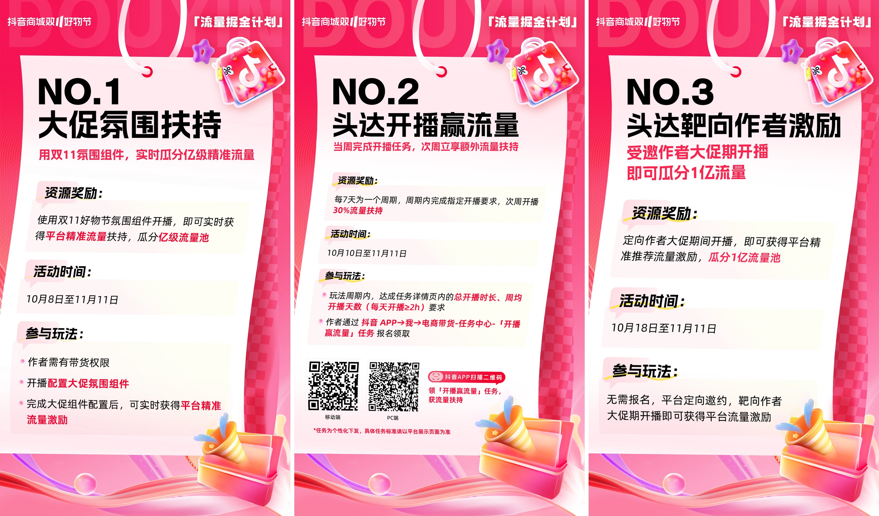 火力全開!抖音電商「雙11流量掘金計劃」重磅上線!十大玩法、億萬流量等你掘金!