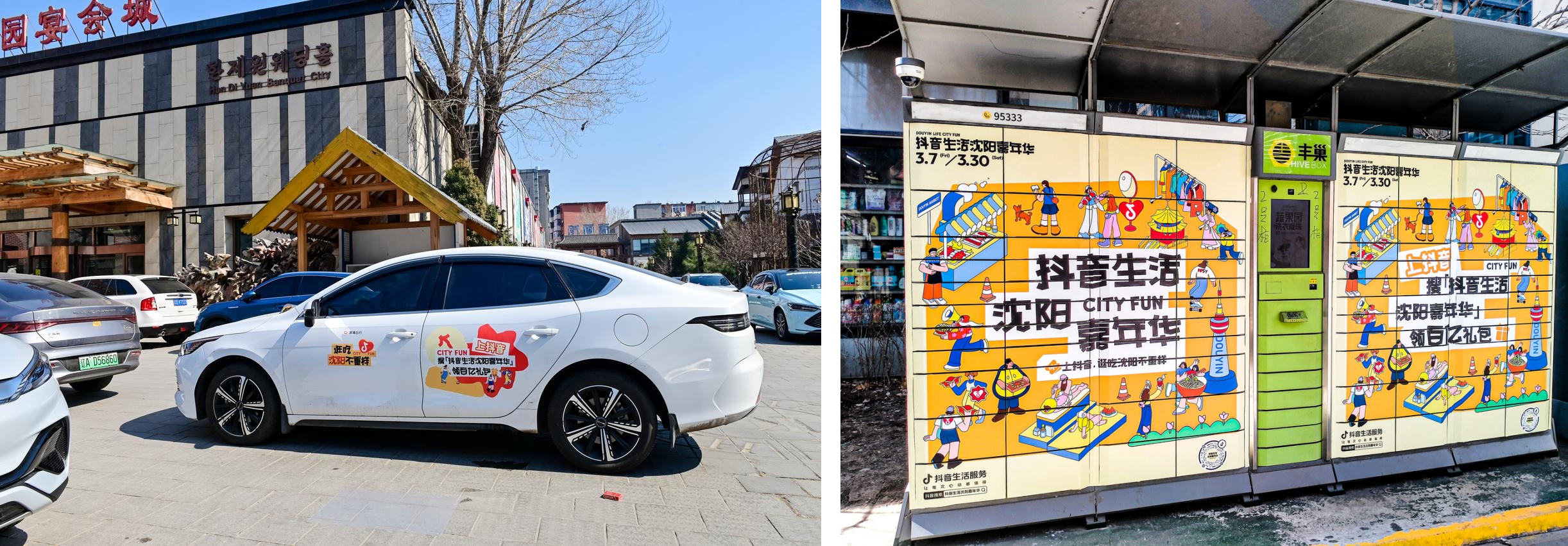 異業(yè)品牌助力推動消費熱,全城上線抖音百億補貼 攜手「滴滴出行」和戶外快遞柜等平臺,為沈陽市民帶來抖音百億補貼,全民共享優(yōu)惠。眾多品牌聯(lián)合推出多樣化的“換膚包”,多輛滴滴車輛以獨特車身設計穿梭于城市,刷新城市風貌。
