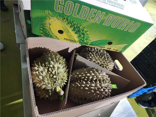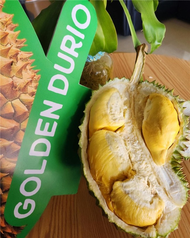 •       金榴蓮(新鮮榴蓮):以優(yōu)質新鮮榴蓮聞名的 Golden Durio 品牌,在本次進博會上占據中心舞臺。其獨特香氣和風味是展會亮點之一,產品包裝明確標注 “PRODUCT OF THE PHILIPPINES”(菲律賓原產)及相關規(guī)格信息。