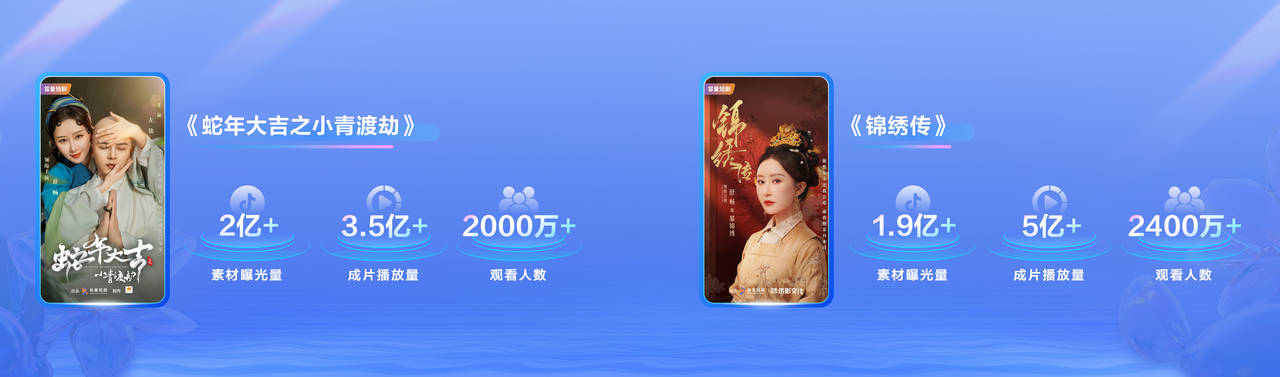 過去一年里,容量互娛與知名演員舒暢合作,出品《蛇年大吉之小青渡劫》《錦繡傳》等優(yōu)質(zhì)短劇。這些爆款品牌短劇為演員、機(jī)構(gòu)、品牌、用戶帶來新價(jià)值。容量互娛以演員價(jià)值為翼,在內(nèi)容提升、制作升級、營銷創(chuàng)新等方面完善布局,提升短劇內(nèi)容質(zhì)感和傳播效率,為市場帶來豐富的精品內(nèi)容。