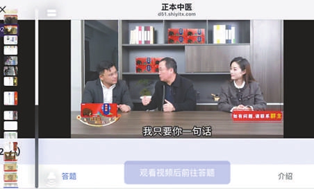 記者調(diào)查發(fā)現(xiàn),同樣的引流招數(shù),引流目標最終都是讓老年消費者去類似《衛(wèi)民大講堂》《正本中醫(yī)》這樣的“私域健康直播間”打卡。企業(yè)微信賬號會組群通知每天打卡。這些錄播的視頻都有時間限制,只允許當天看。