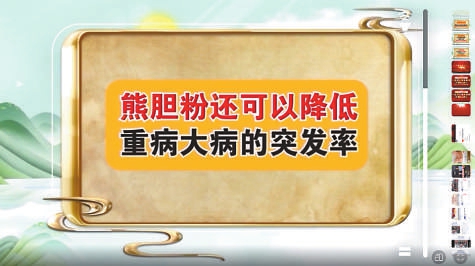 在直播間當中,熊膽粉被賦予“神藥”光環(huán),是“動物藥的天花板”,能“打開全身的排毒通道”“降低重病大病的突發(fā)率”等。直播期間,主講人還與多名患者熱線聯(lián)系,無論患者有什么樣的疾病,主講人都稱很適合服用熊膽粉。