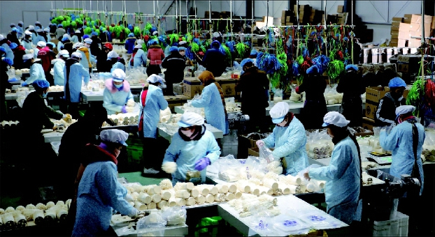 圖為武威眾興菌業(yè)包裝車間工人在包裝金針菇。 cnsphoto 供圖