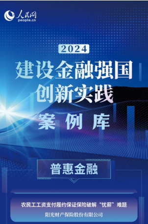 近日,由人民網(wǎng)主辦的“2024人民財(cái)經(jīng)論壇”在京舉辦,論壇同期上線了“高質(zhì)量發(fā)展”案例庫(kù)和2024建設(shè)金融強(qiáng)國(guó)創(chuàng)新實(shí)踐案例庫(kù)。陽(yáng)光財(cái)險(xiǎn)特色服務(wù)案例《農(nóng)民工工資支付履約保證保險(xiǎn)破解“憂薪”難題》成功入選案例庫(kù)“普惠金融”篇章。