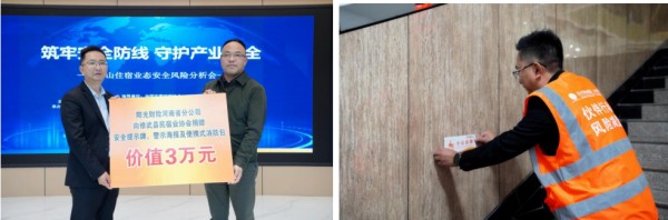 為推動安全措施落到實處,陽光財險現(xiàn)場向修武縣民宿協(xié)會捐贈了數(shù)百套消防物資,包括應(yīng)急包、安全標(biāo)牌與警示海報。會后,與會代表共同前往多家民宿,實地布置安全標(biāo)識,與業(yè)主進行面對面交流。這種“查勘+評估+培訓(xùn)+物資+演練+實踐”的閉環(huán)服務(wù),為實現(xiàn)云臺山景區(qū)住宿業(yè)態(tài)的風(fēng)險減量奠定了堅實基礎(chǔ)。