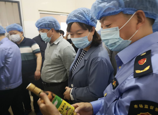 執(zhí)法人員現(xiàn)場檢查。薛慶元攝 活動現(xiàn)場,家長代表抽簽決定了本次活動體驗的學(xué)校食堂——淮安市東城開明中學(xué)。9點30分左右,參與此次消費體驗活動的人員已穿過一排排的教學(xué)樓,來到了啟禮樓,學(xué)校食堂就在一樓。當(dāng)消費體驗人員進入學(xué)校食堂后廚的操作區(qū)域,映入眼前的便是洗消區(qū)域,干凈整潔的地面墻面,給大家留下了深刻印象?!斑€不錯,比我想象得好多了。”第一次參觀學(xué)校食堂的學(xué)生家長郭先生說到。緊接著,食堂工作人員向大家介紹了食堂采購、保管、清洗、加工、消毒、就餐、留樣及食物中毒應(yīng)急預(yù)案等方面的具體做法,得到了家長們的肯定。