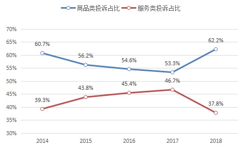 2018年,全國市場(chǎng)監(jiān)管部門共收到消費(fèi)者投訴、舉報(bào)、咨詢1124.96萬件,比去年同期增長20.74%。其中,投訴372.56萬件,舉報(bào)60.69萬件,咨詢691.71萬件,共為消費(fèi)者挽回經(jīng)濟(jì)損失31.17億元。主要呈現(xiàn)八大特點(diǎn): 一是商品投訴比重?cái)U(kuò)大。2018年,全國市場(chǎng)監(jiān)管部門共受理商品投訴231.81萬件,占比62.2%,同比增長61.3%,服務(wù)投訴140.75萬件,占比37.8%,同比增長12.1%。商品投訴主要集中在日用百貨、食品、家用電器、交通工具、通訊器材等領(lǐng)域。服務(wù)投訴主要集中在遠(yuǎn)程購物、居民服務(wù)、互聯(lián)網(wǎng)服務(wù)、文化娛樂服務(wù)、修理維護(hù)服務(wù)等領(lǐng)域。