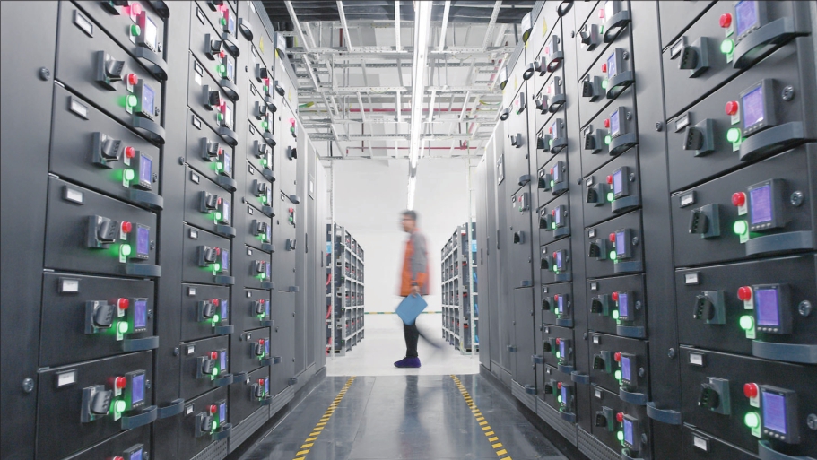圖為工作人員在西部云基地中國移動寧夏數(shù)據(jù)中心對設(shè)備進(jìn)行檢查維護(hù)。