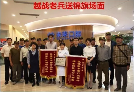 圖為抗戰(zhàn)老兵為未來口腔贈送錦旗