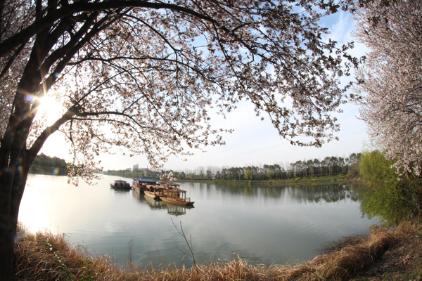 河南淮濱:島上櫻花放湖中游船晃幅幅美圖來