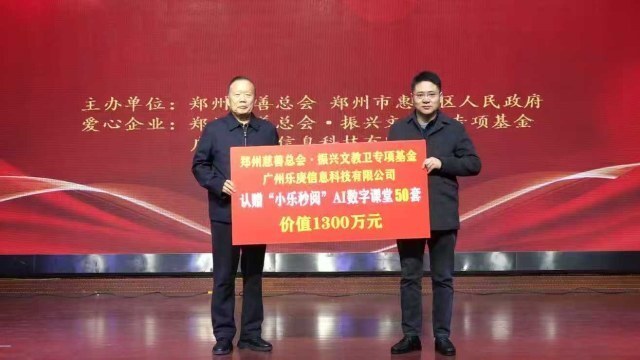 廣州樂庚信息科技有限公司向鄭州慈善總會捐贈“小樂秒閱”無感知AI數(shù)字課堂設(shè)備。