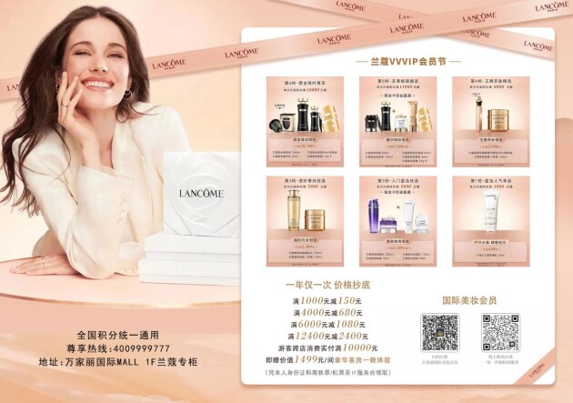 萬(wàn)家麗“好柿發(fā)生”大抽獎(jiǎng)來(lái)襲,在萬(wàn)家麗國(guó)際大牌美妝消費(fèi)滿500元,百貨類購(gòu)物消費(fèi)滿199元,美食消費(fèi)滿99元,生活超市滿99元,即可兌換“好柿發(fā)生”大抽獎(jiǎng)抽獎(jiǎng)券1張(每人每單限兌5張,活動(dòng)期間最多兌換10單),線下抽黃金飾品、品牌手機(jī)、萬(wàn)家麗生活超市購(gòu)物卡、萬(wàn)家麗國(guó)際大酒店豪華客房券、中餐廳儲(chǔ)值卡、國(guó)際美妝消費(fèi)卡等繽紛豪禮,線上集齊“好柿發(fā)生”四字刮刮卡,有機(jī)會(huì)兌換神秘大禮包,活動(dòng)當(dāng)天,還有云上潮玩、千份紅包等你來(lái)解鎖,就在9月30日 19:00,千萬(wàn)不要錯(cuò)過(guò)哦!  囤貨季到啦!8月19日至8月28日,蘭蔻一年一次的超級(jí)vvvip會(huì)員節(jié)火爆來(lái)襲,買正裝送正裝,價(jià)格抄底!買贈(zèng)低至42折!就在萬(wàn)家麗國(guó)際MALL1樓國(guó)際美妝區(qū),錯(cuò)過(guò)不會(huì)再有!趕緊來(lái)get!  禮遇一:超級(jí)vvvip會(huì)員節(jié) 價(jià)格抄底! 萬(wàn)家麗國(guó)際大牌美妝,“價(jià)”日狂歡氛圍拉滿!在萬(wàn)家麗國(guó)際MALL1F蘭蔻專柜單筆消費(fèi)滿1000元立減150元,單筆消費(fèi)滿4000元立減680元,單筆消費(fèi)滿6000元立減1080元!單筆消費(fèi)滿12400元立減2400元!全國(guó)積分統(tǒng)一通用!價(jià)格低于免稅店!  禮遇二:至臻禮遇 買正裝送正裝 蘭蔻真愛(ài)粉集結(jié),全年最豪活動(dòng),價(jià)格抄底!疊加商場(chǎng)滿減活動(dòng),再享買正裝送正裝哦!單次任意購(gòu)買滿1980元檔贈(zèng)價(jià)值480元的蘭蔻小白管防曬乳30ml,單次任意購(gòu)買滿3980元,直通鉑金卡權(quán)益,贈(zèng)價(jià)值1105元緊致煥亮組合套裝,含蘭蔻塑顏凝露水200ml、蘭蔻塑顏眼霜15ml或蘭蔻極光潔面乳125ml、蘭蔻極光面霜50ml,單次任意購(gòu)買滿5980元,贈(zèng)價(jià)值2300元高階抗老組合,含蘭蔻菁純玫瑰柔膚水150ml、蘭蔻菁純面霜(輕盈)30ml,單次任意購(gòu)買滿8980元,贈(zèng)價(jià)值3860元王牌養(yǎng)膚組合,含蘭蔻新菁純臻顏精華乳30ml替換裝、蘭蔻菁純面霜(輕盈)30ml,單次任意購(gòu)買滿11980元,直通黑金卡,贈(zèng)價(jià)值5560元奢華煥膚組合,含蘭蔻黑金面霜50ml、蘭蔻黑金美容液150ml或蘭蔻菁純潤(rùn)白面霜60ml、蘭蔻菁純防曬乳50ml、蘭蔻菁純面膜15g*5,單次任意購(gòu)買滿19980元,贈(zèng)價(jià)值10700元黑金高階抗老組合,含蘭蔻黑金美容液150ml、蘭蔻黑金面霜50ml替換裝、蘭蔻黑金精華乳30ml、蘭蔻菁純面膜15g*5!  禮遇三:來(lái)長(zhǎng)游客,住宿免費(fèi)! 來(lái)長(zhǎng)游客,住宿免費(fèi)!在萬(wàn)家麗國(guó)際MALL1F國(guó)際大牌美妝跨店消費(fèi)實(shí)付滿10000元,憑本人身份證和高鐵票/機(jī)票,至1F服務(wù)臺(tái)領(lǐng)取價(jià)值1499元/間豪華客房一晚體驗(yàn)。萬(wàn)家麗國(guó)際酒店七星設(shè)計(jì)標(biāo)準(zhǔn),五星收費(fèi),獨(dú)特十四大優(yōu)勢(shì),給您帶來(lái)家的體驗(yàn)!  禮遇四:萬(wàn)家麗國(guó)際美妝粉絲會(huì)員節(jié) 強(qiáng)勢(shì)來(lái)襲 萬(wàn)家麗國(guó)際美妝粉絲會(huì)員節(jié)強(qiáng)勢(shì)來(lái)襲,DIOR、YSL、LANC?ME、植村秀、毛戈平、碧歐泉、歐萊雅全場(chǎng)低至85折,空前豪禮,奢寵狂歡,價(jià)格低于免稅店。8月19日至28日,在萬(wàn)家麗國(guó)際MALL 1F DIOR專柜消費(fèi)滿1000元立減150元,消費(fèi)滿3000元立減500元,消費(fèi)滿4000元立減700元,還有多檔買贈(zèng)、會(huì)員升級(jí)禮等超值福利等你解鎖。8月19日至8月25日,在萬(wàn)家麗國(guó)際MALL 1F YSL專柜消費(fèi)滿1500元立減230元,消費(fèi)滿2500元立減400元,消費(fèi)滿3500元立減600元。8月19日至8月25日,在萬(wàn)家麗國(guó)際MALL 1F植村秀專柜消費(fèi)滿1000元立減150元,消費(fèi)滿3000元立減500元,消費(fèi)滿4000元立減700元。8月18日至8月28日,在萬(wàn)家麗國(guó)際MALL 1F歐萊雅專柜消費(fèi),黑卡會(huì)員消費(fèi)享3倍積分,其他會(huì)員消費(fèi)享2倍積分(僅限活動(dòng)期間首單),會(huì)員到店禮贈(zèng)面膜、松露眼霜等多倍驚喜。8月20日至8月24日,開(kāi)業(yè)活動(dòng)期間,在萬(wàn)家麗國(guó)際MALL 1F碧歐泉消費(fèi),男士水動(dòng)力提亮保濕三部曲開(kāi)業(yè)專享價(jià)僅需920元,禮贈(zèng)價(jià)值258元水潤(rùn)禮,男士藍(lán)鉆淡紋明星三部曲開(kāi)業(yè)專享價(jià)僅需1850元,禮贈(zèng)價(jià)值774元年輕禮!8月15日至8月31日,在萬(wàn)家麗國(guó)際MALL 1F 毛戈平消費(fèi),原價(jià)1010元的奢華養(yǎng)膚黑霜禮贈(zèng)價(jià)僅需680元,更多品牌會(huì)員超值福利,詳詢4009999777。  超值狂歡,繽紛禮遇,就在宇宙中心萬(wàn)家麗,想了解更多活動(dòng)詳情,請(qǐng)關(guān)注湖南萬(wàn)家麗實(shí)業(yè)集團(tuán)微信公眾號(hào)!