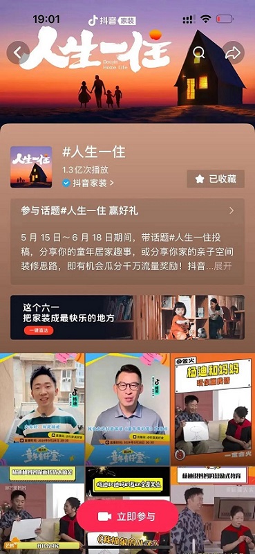 對親子家裝同樣有話說的大批用戶,也積極參與到話題中,分享家裝經(jīng)驗和創(chuàng)新靈感,上抖音參與#人生一住、#童年有好室 話題詞,了解最in裝修趣事和親子寶藏好物。