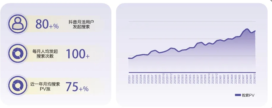 抖音的啟發(fā)式搜索也為多個(gè)行業(yè)帶來“搜索紅利”,如電商場景搜后購商品占比已高達(dá)60%,本地生活服務(wù)日均意圖搜索提升了71%,搜后購買團(tuán)購占比達(dá)63%。這些數(shù)據(jù)充分展示了搜索營銷在激發(fā)用戶興趣、擴(kuò)大品牌影響力方面的價(jià)值。