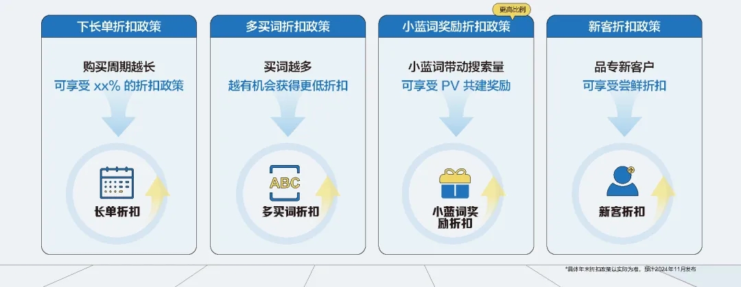 從種到收,搜索既是用戶購買決策的催化劑,也是品牌挖掘更多生意增量的新機(jī)遇。巨量引擎通過搜索產(chǎn)品放入持續(xù)迭代,幫助品牌實(shí)現(xiàn)品效雙增長。當(dāng)前,巨量引擎還推出長單、多買詞、新客、小藍(lán)詞等專屬折扣政策,助力更多品牌玩轉(zhuǎn)搜索營銷。