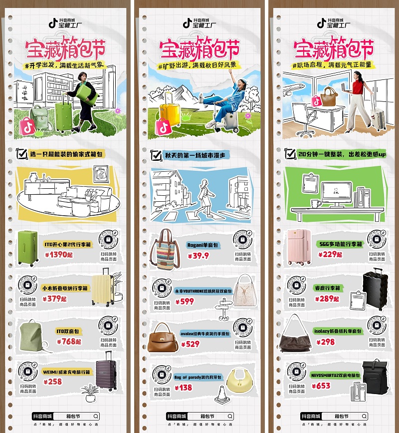 隨著近年消費趨勢的變化,不難發(fā)現(xiàn),箱包既承載著不同場景下的實用性功能,也承載著人們的情緒和生活態(tài)度。無論是能幫助大學(xué)生絲滑開學(xué)的“zip.版大容量行李箱”,還是收納滿分,讓露營、自駕、長途旅行也能輕負(fù)擔(dān)的多功能分區(qū)行李箱,亦或是幫助在機(jī)場、旅行途中分分鐘出片的新潮騎行行李箱,寶藏箱包節(jié)的多樣箱包為學(xué)生、職場人、旅行發(fā)燒友等多重人群為提供選擇“最優(yōu)解”,讓每個人都能“對號入座”,找到適配自己的場景與產(chǎn)品,為出行松弛感“大加分”。