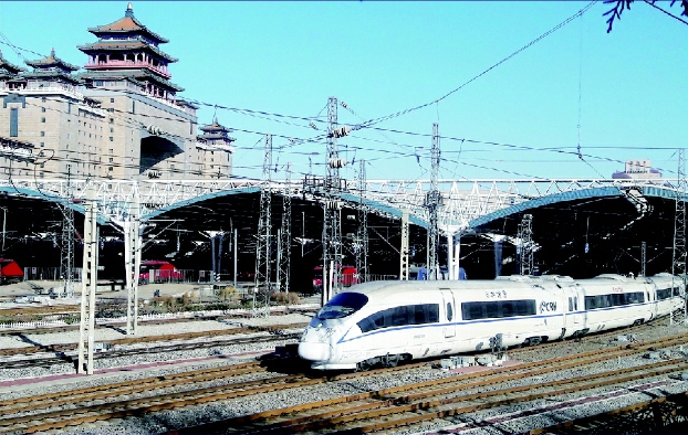 4月10日起,全國(guó)鐵路實(shí)行新的列車運(yùn)行圖,高鐵列車開(kāi)行方案得到優(yōu)化,多條線路運(yùn)行時(shí)間縮短,乘坐火車出行變得更快捷。其中,調(diào)圖后,北京至青島將實(shí)現(xiàn)3小時(shí)內(nèi)到達(dá),較調(diào)圖前壓縮49分鐘;北京至蘭州8小時(shí)內(nèi)到達(dá),較調(diào)圖前壓縮41分鐘;蘭州至成都動(dòng)車組列車首次開(kāi)行,較既有線路列車運(yùn)行時(shí)間壓縮約5小時(shí)。圖為高鐵列車駛出北京西站。 本報(bào)記者 余波 攝
