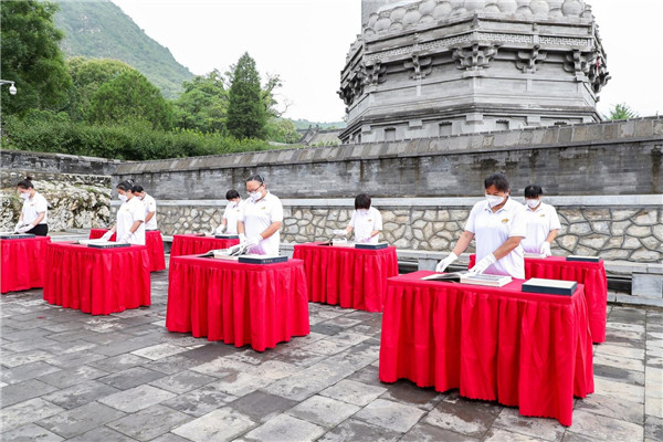今后,云居寺將以持續(xù)開展文化品牌活動作為宣傳契機,在守正中不斷創(chuàng)新,在創(chuàng)新中不斷發(fā)展,多角度展示云居寺獨特的歷史內(nèi)涵和文化魅力。同時繼續(xù)通過文物保護修復、數(shù)字化無損采集等技術(shù)手段,深入挖掘并展示珍貴文物背后的故事,以蓬勃興起的創(chuàng)新文化宣傳方式,加強珍貴文物的“保護”與“活化”,為打造365天永不落幕的云居寺石經(jīng)博物館搭建數(shù)字化交流平臺,使文物保護成果更多更好的惠及人民群眾。 云居寺曬經(jīng)節(jié)歷史文化背景: 史料記載,六月初六古稱天貺節(jié),民間又稱“曬經(jīng)日”。傳說玄奘西天取經(jīng),不慎將經(jīng)書落入水中,急忙撈起曬干,才得以完好帶回。后來寺庵僧尼于每年六月初六都會集齊信眾,將收藏的經(jīng)卷拿出來翻曬,以利經(jīng)卷保存,另有“曬經(jīng)度眾生,功德大無窮”之意。 云居寺在千余年的刻經(jīng)過程中,石經(jīng)刊刻是以紙卷經(jīng)書作為刻經(jīng)底本的。夏季經(jīng)卷容易受潮,每逢陽光充足的天氣,僧人們就在石經(jīng)山頂上較為平坦的地方晾曬經(jīng)書。久而久之,山頂曬經(jīng)的平臺就被人們稱之為“曝經(jīng)臺”。