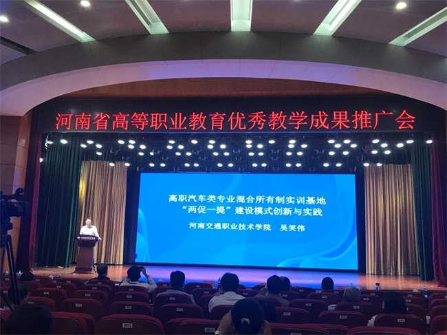 此次推廣會經(jīng)河南省教育廳批準(zhǔn),由河南省高等職業(yè)教育研究會、河南省中原職業(yè)教育研究院聯(lián)合主辦,是我省高等職業(yè)教育優(yōu)秀教學(xué)成果在全省推廣和分享的盛會。推廣成果以往屆國家級教學(xué)成果和我省高等職業(yè)教育教學(xué)成果特等獎為主,代表著我省高等職業(yè)教育教學(xué)成果的高水平。 據(jù)悉,全省僅有16所高職院校的21項優(yōu)秀教學(xué)成果在大會上交流推廣。河南交通職業(yè)技術(shù)學(xué)院(簡稱“河南交院”)作為受邀院校之一,參加推廣交流。會上,河南交院吳笑偉教授以《高職汽車類專業(yè)混合所有制實訓(xùn)基地“兩促一提”建設(shè)模式創(chuàng)新與實踐》為題,從成果的起源、背景、解決的主要問題和解決方案、創(chuàng)新點和應(yīng)用推廣效果5個方面,對河南交院混合所有制實訓(xùn)基地建設(shè)成果進(jìn)行分享交流。教學(xué)成果理念領(lǐng)先、應(yīng)用效果好,為全省混合所有制實訓(xùn)基地建設(shè)提供了“河交”方案,得到大會同仁的一致肯定和廣泛好評。 此次大會作為河南高等職業(yè)教育優(yōu)秀教學(xué)成果在全省推廣的盛會,對于促進(jìn)河南交院混合所有制教學(xué)成果在全省推廣應(yīng)用,提升河南交院在河南高校中的知名度和影響力具有重要意義。(張曉玉)