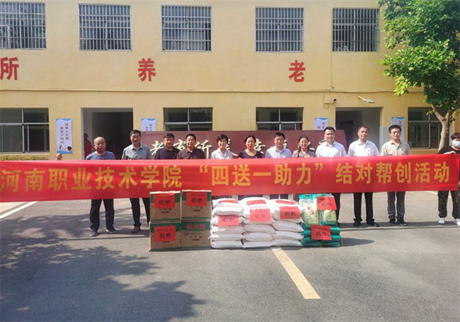 為發(fā)揮文明單位示范引領(lǐng)作用,促進城鄉(xiāng)精神文明融合發(fā)展,助力全面推進鄉(xiāng)村振興,以實際行動迎接黨的二十大勝利召開,6月30日,河南職業(yè)技術(shù)學院黨委副書記、紀委書記田華、副校長李玉峰帶領(lǐng)宣傳部、科技開發(fā)處、繼續(xù)教育與培訓中心等部門同志赴舞陽縣辛安鎮(zhèn),與舞陽縣辛安鎮(zhèn)政府簽署“四送一助力”結(jié)對幫創(chuàng)合作協(xié)議,開展物資捐贈,支部共建、慰問敬老院和送文化、科技等結(jié)對幫創(chuàng)活動。舞陽縣縣委常委、宣傳部長、副縣長王仕梁及有關(guān)部門和鄉(xiāng)鎮(zhèn)領(lǐng)導陪同參加。