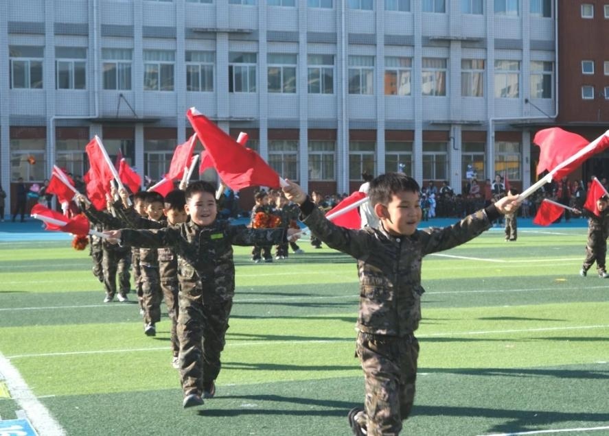 各班級(jí)入場(chǎng)儀式巧妙融入“軍種”“兵種”“裝備”以及祖國(guó)需要守護(hù)的重要山脈、河流等主題元素,結(jié)合兒童化的演繹,在情境創(chuàng)設(shè)和角色扮演中隆重登場(chǎng)、精彩亮相,引爆全場(chǎng)觀眾的陣陣歡呼和雷鳴掌聲,將“軍事三項(xiàng)”運(yùn)動(dòng)會(huì)的氛圍推向高潮。